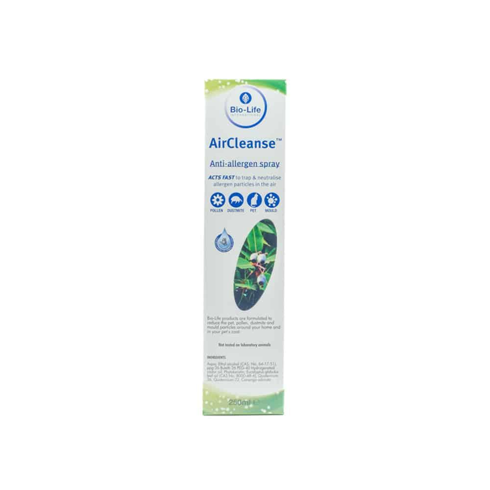AirCleanse is een milieuvriendelijke spray met Eucalyptus en Ylang Ylang, die de in de lucht aanwezige allergenen waaronder met name stuifmeel, huisstofmijt, huisdier & schimmelsporen sterk verminderd (tenminste 65% reductie, 85% reductie indien gebruikt in combinatie met PetalCleanse). De in het product aanwezige Eucalyptus helpt bij het vrijer ademen bij mensen die last hebben van astma en/of hooikoorts. AirCleanse heeft de UK Allergy Friendly Product award toegekend gekregen. Niet getest op dieren.