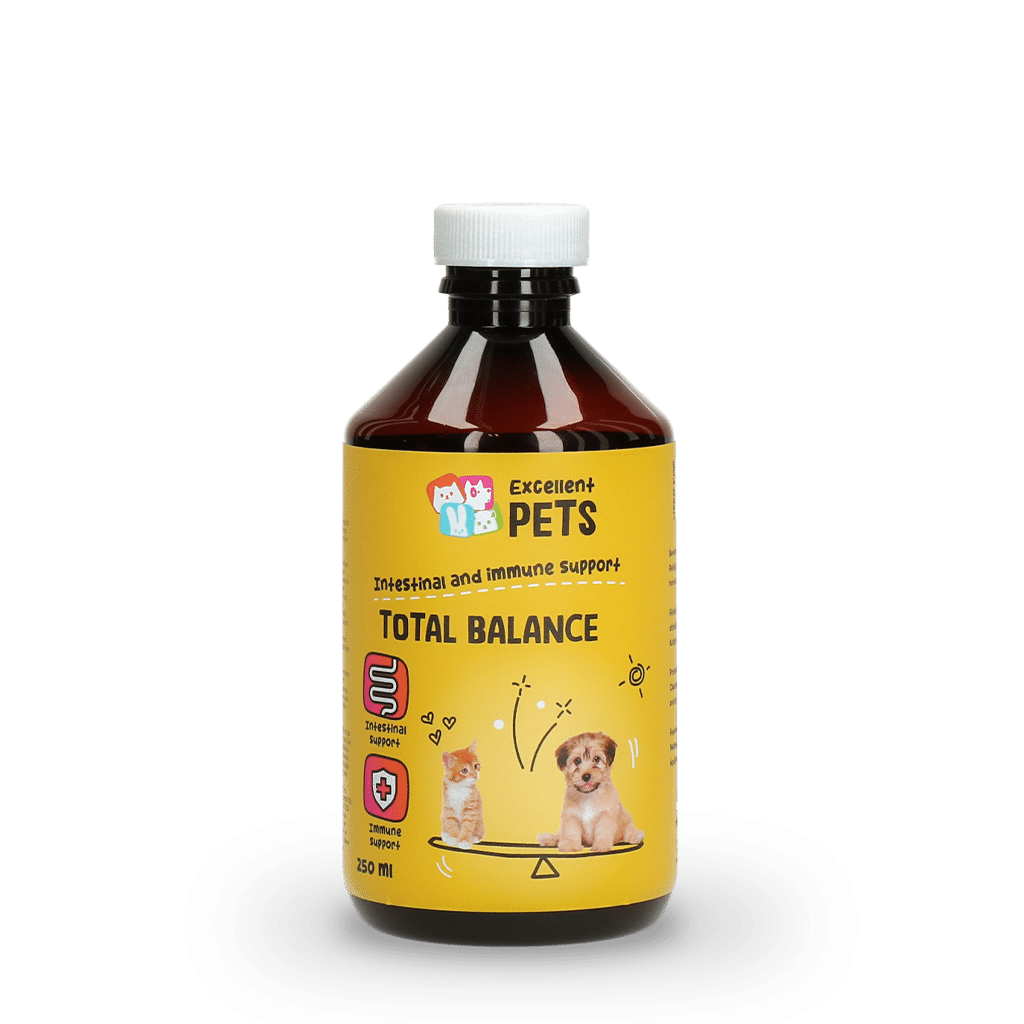 Excellent Pets Total Balance is een voedermiddel voor honden en katten in vloeibare vorm. Het ondersteunt de groei en ontwikkeling van jonge dieren, het bevordert de werking van het maagdarmkanaal en het stimuleert het immuunsysteem.