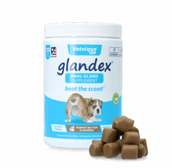 Glandex soft chews zijn speciaal ontwikkeld om anaalklierproblemen bij honden tegen te gaan. Bij iedere ontlasting komt er een beetje inhoud uit de anaalklieren mee naar buiten en op deze manier worden de problemen minder of verdwijnen helemaal.